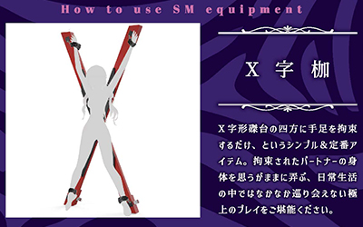 X字形磔台の四方に手足を拘束するだけ、というシンプル&定番アイテム。
