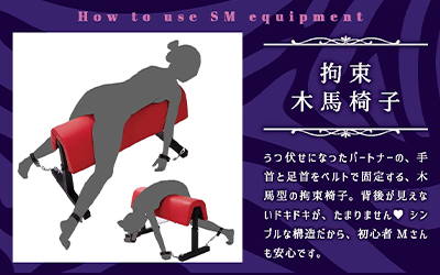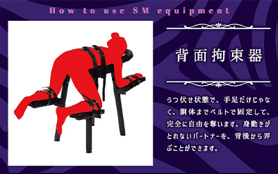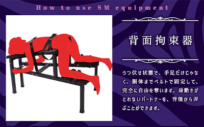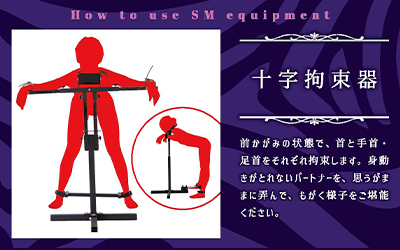 手足を拘束して、完全に身動きが取れない状想にする、SMの定番アイテム。
