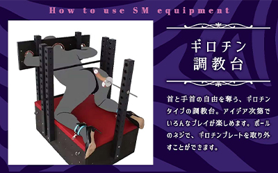首と手首の自由を奪う、ギロチンタイプの調教台。